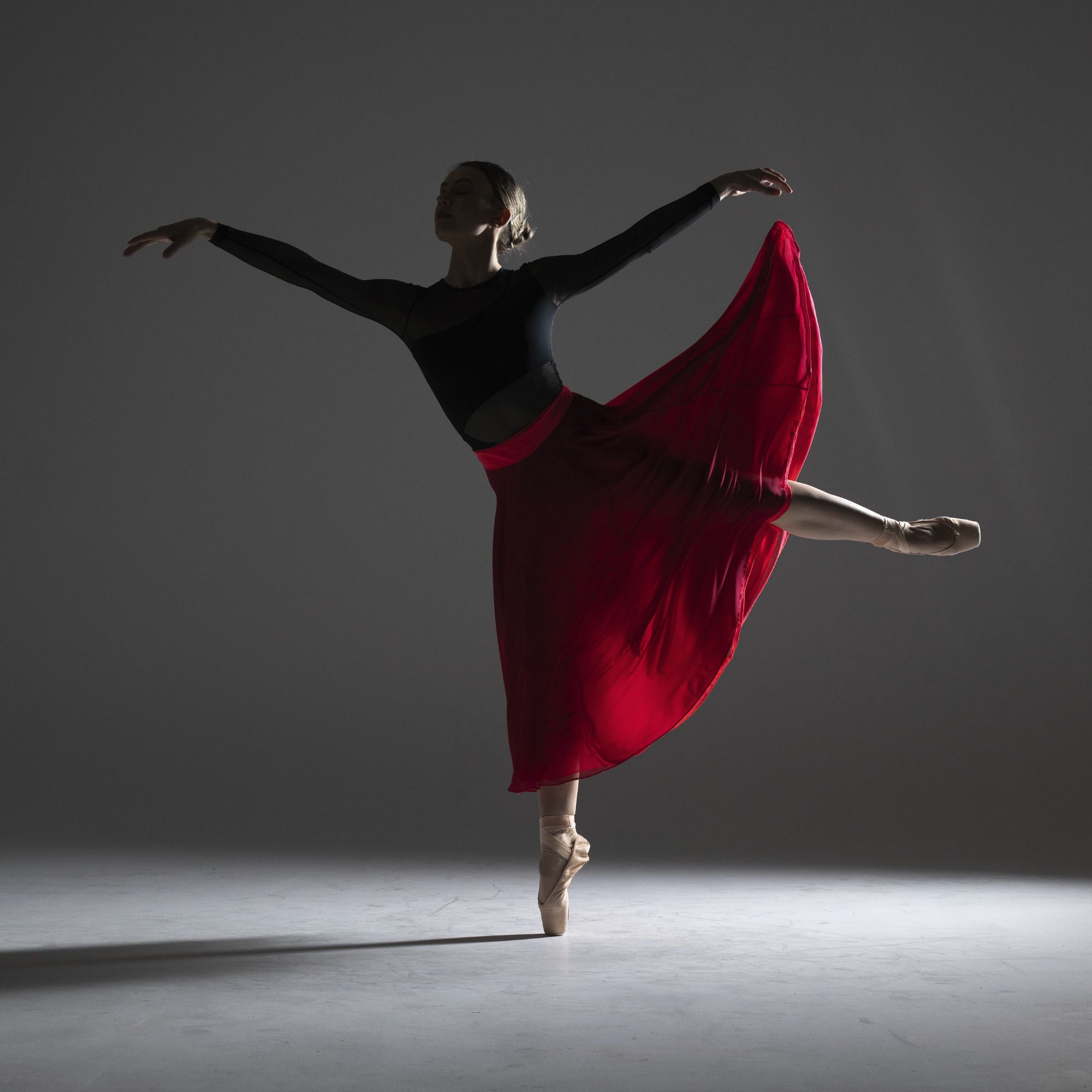 Bilder aus Photoworkshop mit Sascha Hüttenhain, im Studio Zwo, Siegen, Dezember 2022 Photograf: Frank Dziabel, Model: Viktoria Nowak (rotes Kleid: by petrova_dance_design)